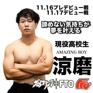 現役高校生で練習生の涼磨(りょうま)が11.16(土)ジモプロでプレデビュー戦、11.17(日)おおいたまちなかプロレスでデビュー決定‼