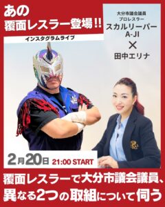 そのスカルリーパーA-ji(エイジ)が松山市議会議員の田中エリナ様のインスタグラムLIVEにゲストとして登場します!