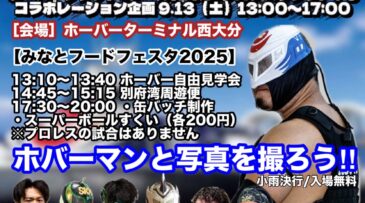 【FTO NEWS】 『ホバーマンBANRI就航記念2DAY’s』 ⚫9.13(土)13:00〜「みなとのフードフェスタ2025」 ホーバーターミナル西大分 ⚫9.14(日)18:00〜「FTO […]