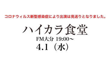 【お知らせ】 大分県が発表した外出自粛要請の発表を受け、本日スカルリーパーA-jiが19:00〜生出演予定となっていましたエフエム大分「ハイカラ食堂」の出演は見送りとなりました。 ご視聴を楽しみにされていたリスナーの皆様 […]